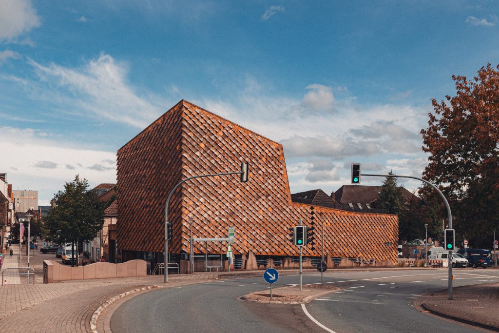 Zwischen Weser und historischer Altstadt soll ein interaktives Ausstellungshaus zum Thema Düfte und Aromen entstehen. Der skulpturale Neubau mit turmartiger Erhöhung und Auskragung in den Straßenraum markiert prägnant die historische Stadteinfahrt und bildet im Einklang mit der Lutherkirche und den Torhäusern einen weiteren identitätsstiftenden Orientierungspunkt der Stadt. Auf rund 850 m2 Nutzungsfläche werden unterschiedlichste Räume für die Dauerausstellung, Sondernutzung, ein Foyer mit Museumshop sowie Büroflächen generiert. Der Ausstellung liegt hierbei ein innovatives Erschließungskonzept zugrunde. In einem sinnlichen Erlebnis durchläuft der Gast einen fließenden, zusammenhängenden Raum mit leichter Steigung von 6% und überwindet so barrierefrei ein Geschoss. Separate Wegeführungen und Beschilderungen für Rollstuhlfahrer, Gäste mit Kinderwagen oder Gehbehinderungen entfallen – es gibt einen Weg für alle. Der Weg führt durch verschiedene, interaktive Themenbereiche und endet beim Duftgarten auf dem Dach des Gebäudes mit einem abschließenden Blick zurück auf die Stadt Holzminden.